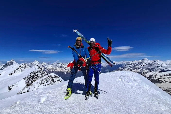 Придвижвайки се пеша, със ски или само с парапланер, през юни двамата реализираха начинанието си за рекордните 51 дни, включително 12 почивни дни, без да ползват помощно превозно средство, кабинкови лифтове или други транспортни средства.