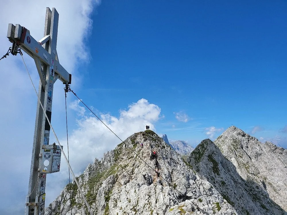 Маршрутът започва стръмно, с метални стълбове, за да стигне до върха. След това ще продължите по вълнообразни пътеки по билото на планината. Няма висок адреналин, въпреки че има един малък пешеходен мост, но той е като детска игра, спрямо някои от другите мостове в тази статия. В истински алпийски стил, металните въжета, държащи кръста на върха, са просто продължение на жиците, в които сте се захващали цял ден.