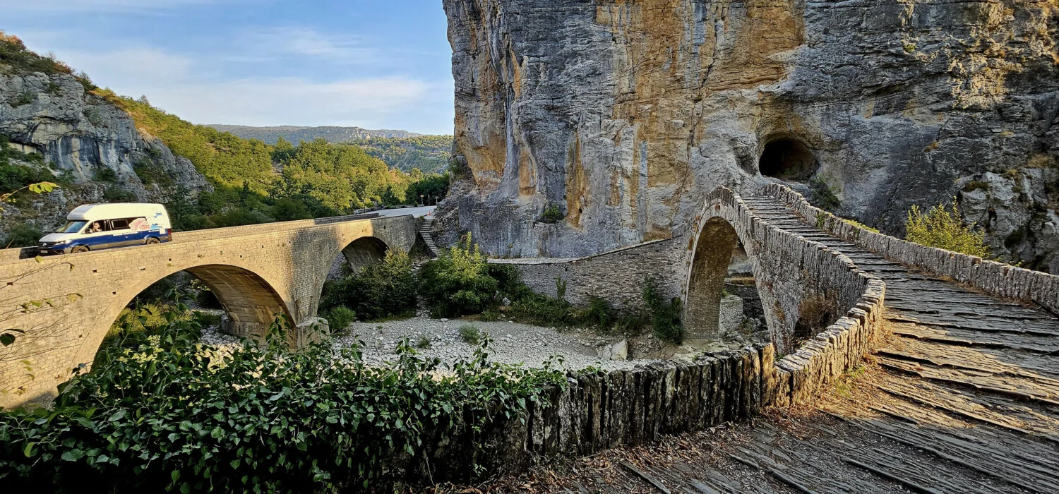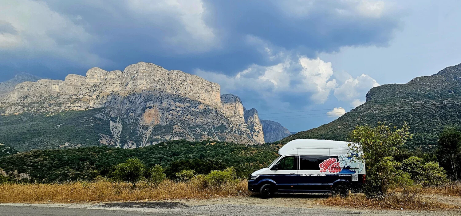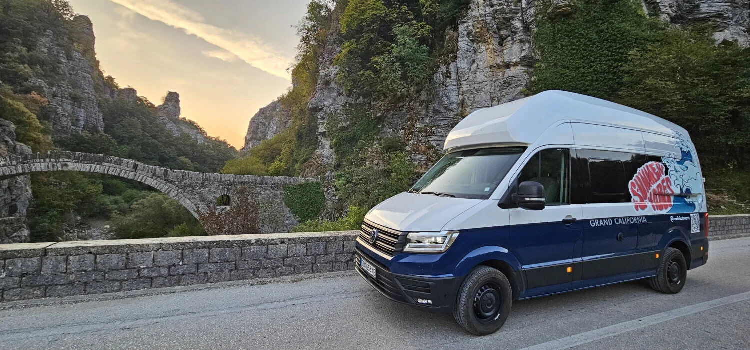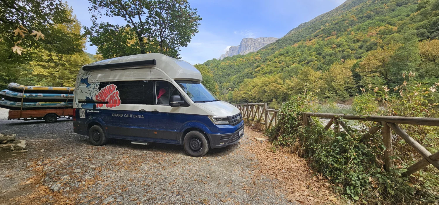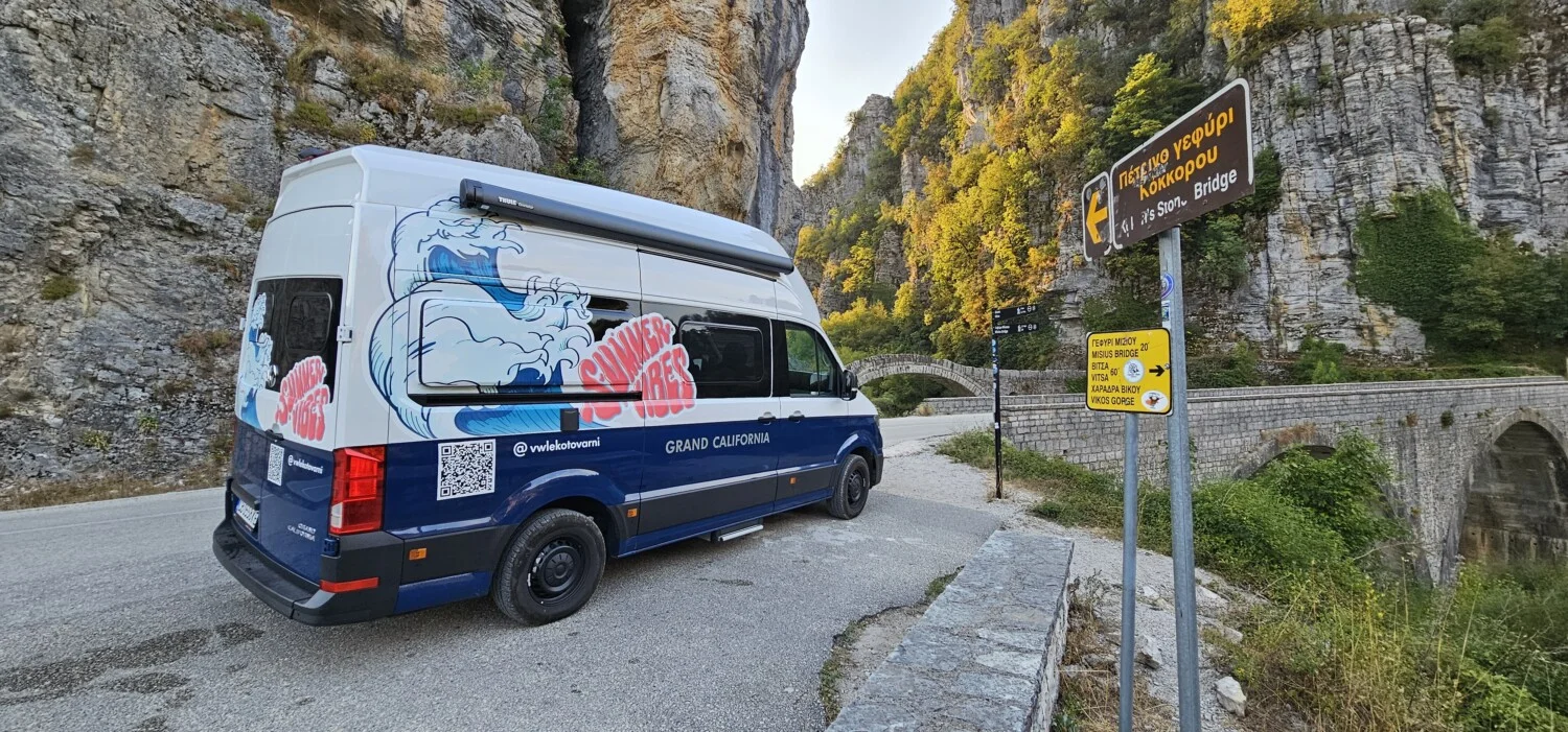 Пътувайки с автомобил като Volkswagen Grand California имахме свободата да обиколим много от селата и интересните зони в района. Да спим на брега на реката, издълбала този величествен каньон – р. Войдоматис, както и на върха на планината Тимфи, през която това чудо на природата е издълбано. Да се наслаждаваме от комфорта на дома си, на гледки към вцепеняваща природа. Да видим изградената естествена платформа за наблюдение над най-дълбоката част на дефилето в Оксия, място на 8 км по новопостроен път от село Монодендри и малко по-късно да сме на друга гледка към ждрелото при Белой, достъпна по черен път от село Врадето. Свободата на това пътуване осигурена от Grand California надмина очакванията ни и вече от опит може да кажем, че кемпер ванът е чудесен вариант да се насладите на каньона Викос.