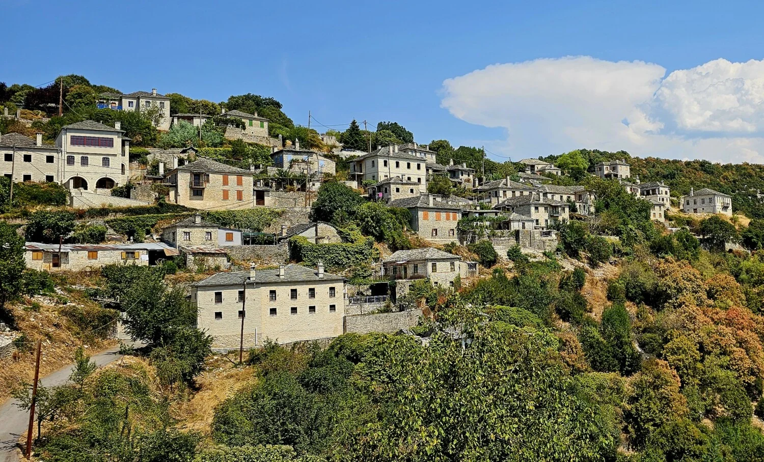 Селото е с невероятен чар. Цветни улички и красиви сгради. Има изключително симпатични заведения, както с вкусна автентична гръцка кухня, така и с по-модерни интерпретации на десерти, коктейли и други. Така заредени с енергията на Монодендри, правим още една разходка в района по пътеката към изворите на р. Войдоматис, за който ще разкажем след малко, а сега продължаваме с още един маршрут, по който ще видите интересен манастир и уникална църква.