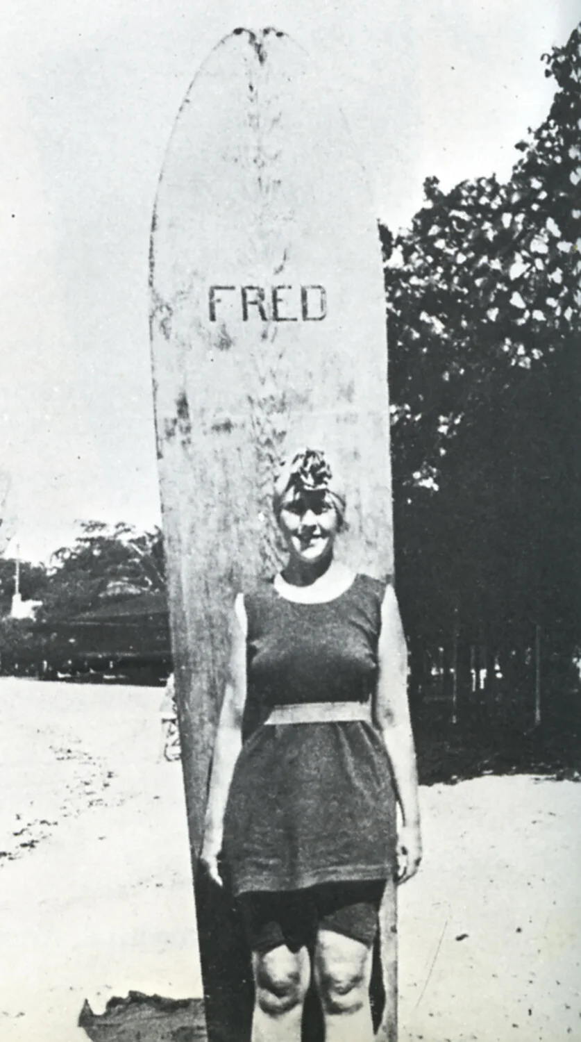 Дъската, използвана от писателката на вече известното място за сърфиране Мюзенберг, Южна Африка, е някаква кръстоска между дъска и водни ски – тънка, тясна, гладка и със заоблен нос. Тези дъски са били използвани от 1904 г. – дълги около 150 см и широки 45 см.