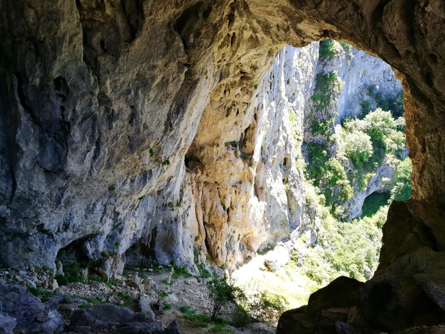 И, докато си мислите за наследеното от прачовеците, идва ред за същинския адреналин: спускането към 43 метра дълбока пропаст, чието дъно е покрито с каменни блокове. Хубавото е, че тя е по-светла, защото там е и изходът – т.е. втората пещера. Оттам по кратка пътечка ще се озовете точно пред „Дяволското гърло“.
