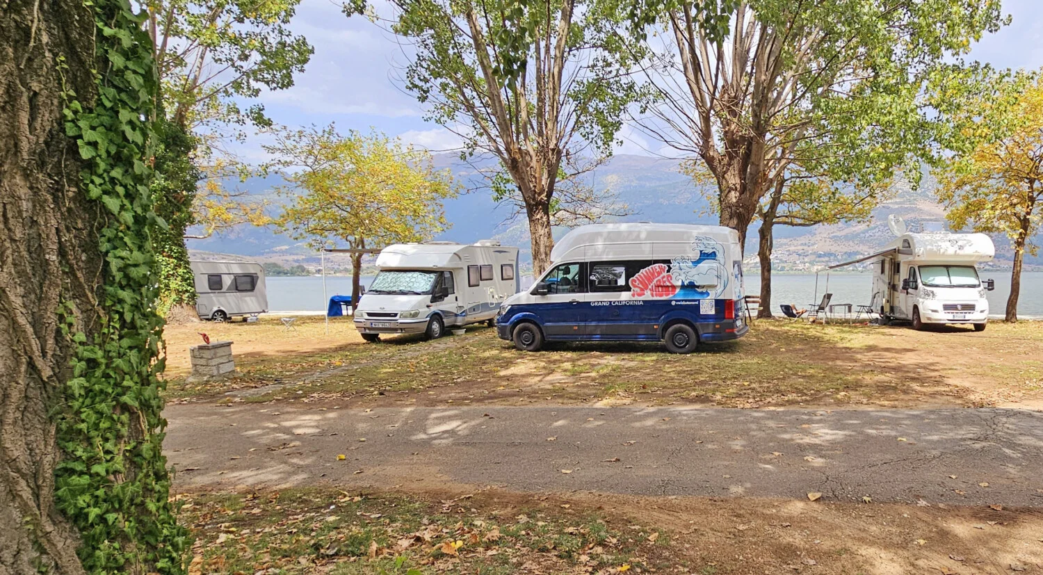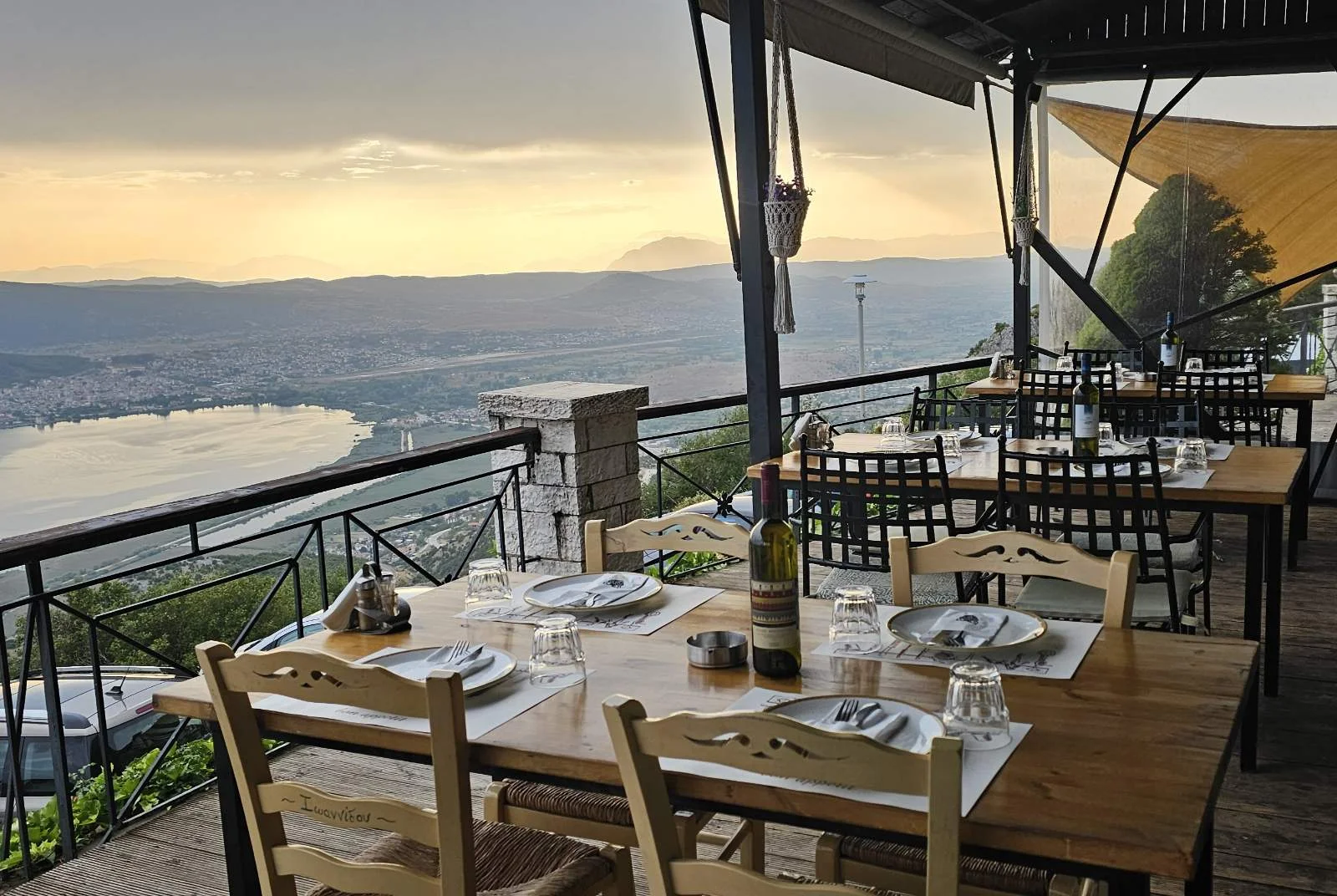 Пътят ни към морето минава през град Йоанина, който се намира на брега на едноименното езеро. Тук спираме на къмпинг край езерото, за да заредим с вода и да изпразним мръсните резервоари. Къмпингът е чист, тих и уютен – всичко което искаме. Има гребна база и се наблюдават много трениращи състезатели, а енергията на мястото е много приятна. Това, че има град наблизо е чудесно, защото може да заредим с провизии. Има и Wi-Fi и свършваме няколко бързи задачи, изискващи повече мобилен трафик. Наоколо се извисяват красивите планини, част от масива Пинд, и веднага след настаняването ни в къмпинга, решаваме да се качим до най-близките хълмове в близост, за да се полюбуваме на залеза. Панорманият ресторант на върха силно ни привлича и решаваме да опитаме кухнята. Не съжаляваме. Храната беше чудесна, но акцентът бе гледката. Обичаме да посрещаме слънцето рано сутрин и да го изпращаме в късния следобед. А летните залези са нещо, което засилва усещането ни, че живеем във вълшебен свят.