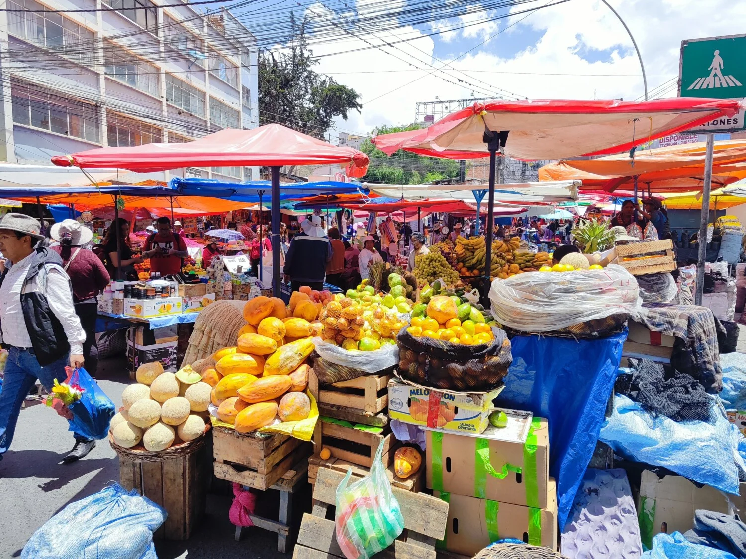 Събота е, пазарен ден и всяка уличка от широкия център на Ла Пас представлява шпалир от щандове и сергии. Усещането е, че в хаотичния алъш вериш се изсипало и участва цялото население на региона, като не съм сигурен кои са повече, продавачите или купувачите. Трудно си пробивам път сред местните през задръстените улици, зяпам отрупаните с азиатски боклуци сергии, дивя се на разнообразието от плодове и зеленчуци и се чудя от какво се е състояла потребителската кошница на средния европеец, преди Колумб да тръгне на пазар за боб, царевица, краставици, домати, картофи, тиквички и прочие хранителни продукти от първа необходимост. Е, да, и за злато също.