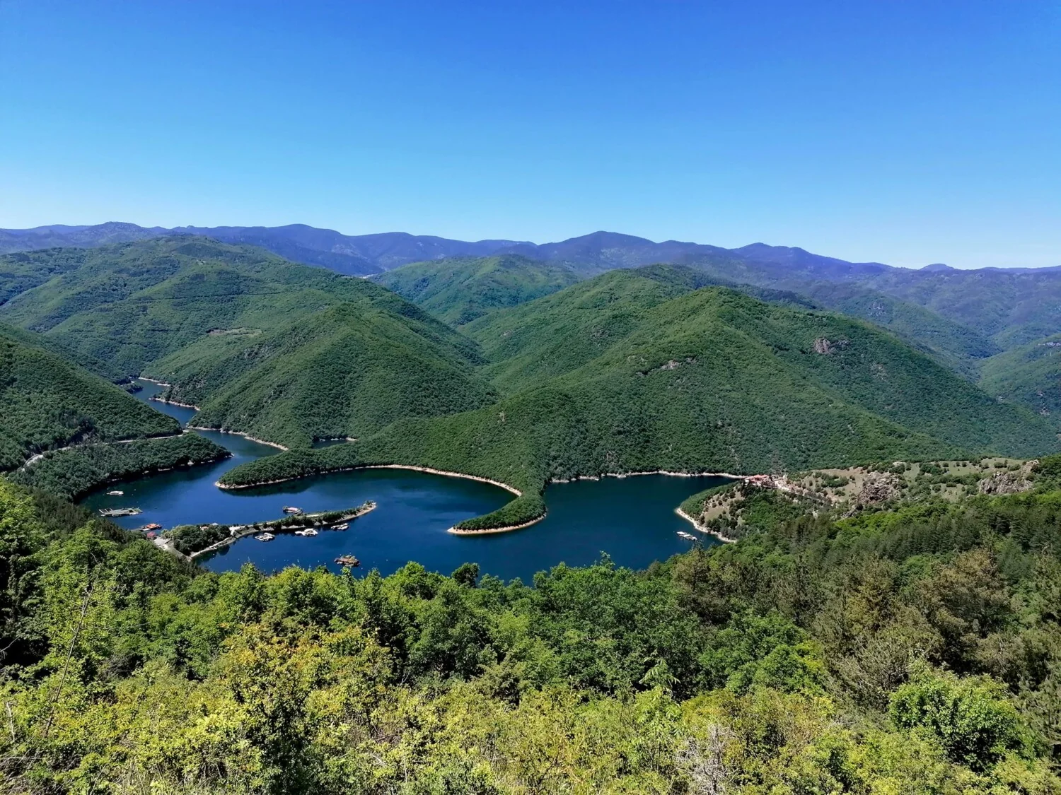 Най-хубавото обаче ви очаква като се качите на високото. Ще бъдете неустоимо привлечени от божествената панорама, която се открива от хълма. От крайната точка се виждат като на приказна картина всички извивки на язовира, закътали малки романтични заливчета. По водата намигат малки рибарски лодки, а около малките полуостровчета ще видите да се носят двайсетина къщички на понтони. Отидете по-рано, за да имате време да се насладите на това кътче от рая.