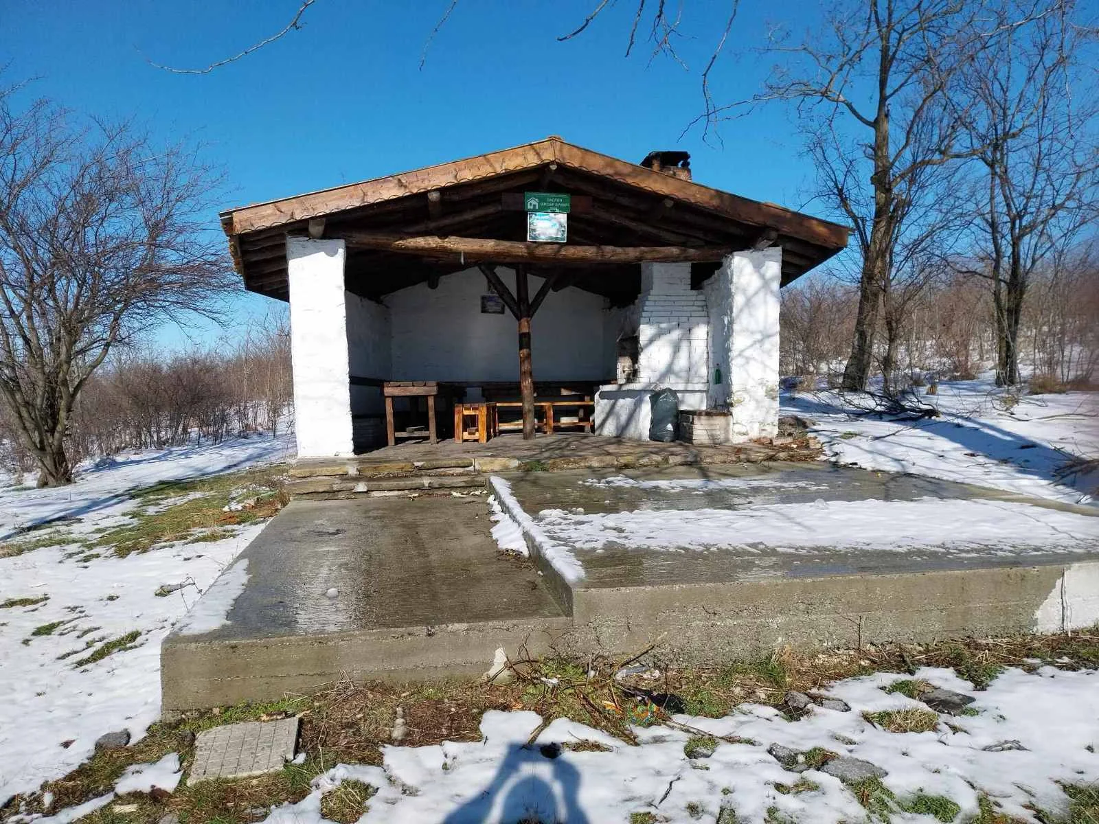 В изграждането участва зидарят Никола Богданов, работници и курсисти от селскостопанския техникум, със съдействието на ръководството на техникума и работата на още няколко човека. Заслонът представлява едно помещение с козирка, разполагащо с нарове за 15 човека, постелъчен инвентар, печка и кухненска посуда. Вратата не се заключва, за да може да се ползва свободно.