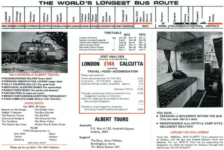 Епичното пътешествие с автобус отвеждало пътниците от Англия до Белгия, Западна Германия, Австрия, Югославия, България, Турция, Иран, Афганистан, Пакистан и Северна Индия.