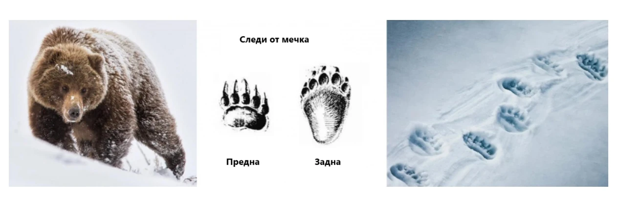 Следите от мечка не могат да бъдат сгрешени. За тях е характерна разлика между следата от предна и задна лапа.