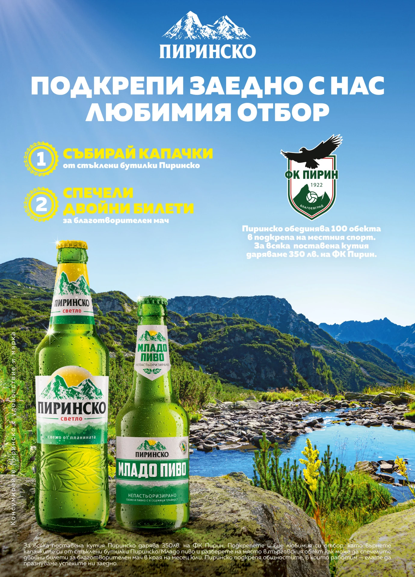 Местният бизнес се присъединява към инициативата- 100 търговски обекта ще се включат в кампания за събиране на капачки от бира «Пиринско», а за всяка пълна кутия най-лоялните им клиенти ще получат двойни покани за благотворителен мач в края на юли.