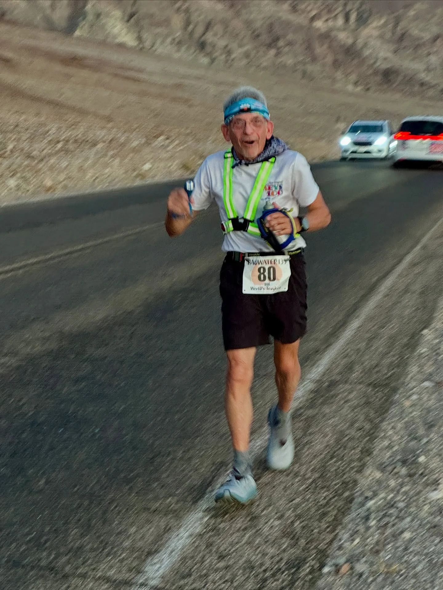 Бекър бяга със стартов номер 80 – точно колкото е неговата възраст. Той е добре познат на организаторите, но все пак това са 80 години и 217 километра напечен от слънцето асфалт — един от най-негостоприемните терени в Северна Америка. Ветеранът обаче не само печели медал за финиширане, но и отваря нова възрастова категория в историята на състезанието: 80–84 години.