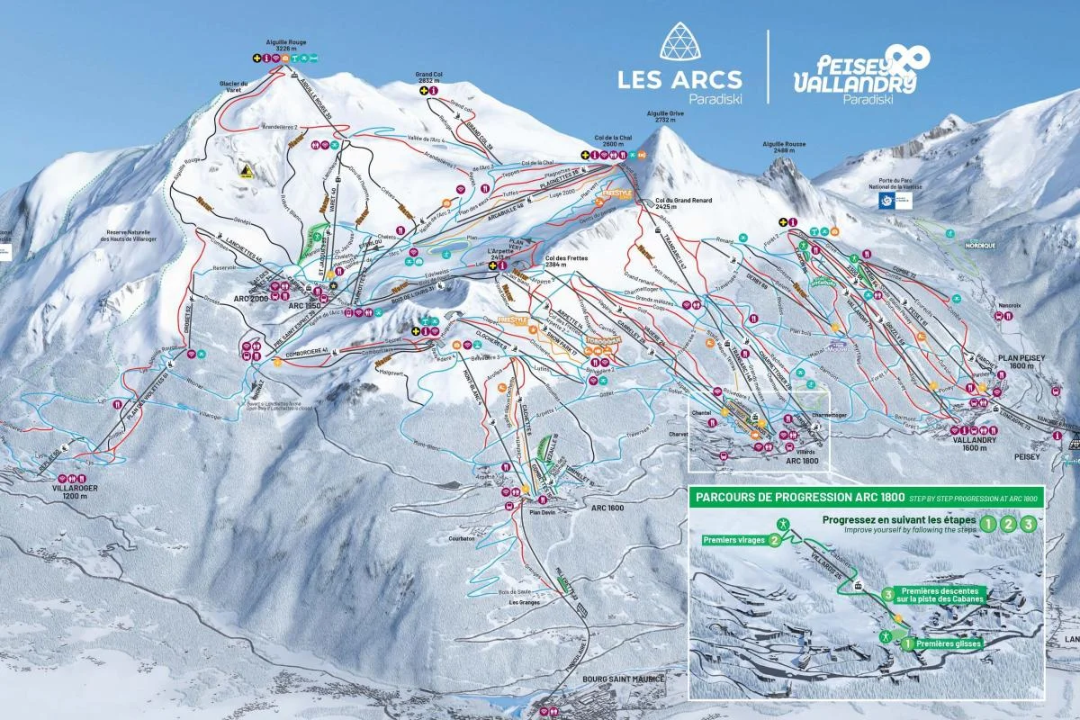 Paradiski предлага над 425 км писти, свързани с бързи лифтове и надеждна снежна покривка през целия сезон. Les Arcs 2000 предлага на посетителите: