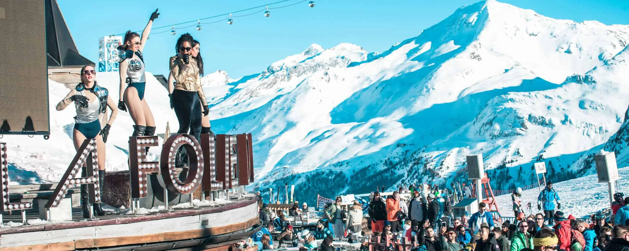 Освен с писти, Вал д’Изер е известен и с богатия си живот извън тях. Емблемата на Вал Д‘ИзерLa е Folie Douce – е едно от най-популярните места за Апре ски парти на върха. Ще се потопиш в невероятната атмосфера на хаус музика, диджеи на живо, хипнотизиращи шоута, пръскане с шампанско и много танци на маса. Забавлението започва в 14:30 ч. и затваря в 17:00 ч., точно навреме, за да слезеш с последния лифт.