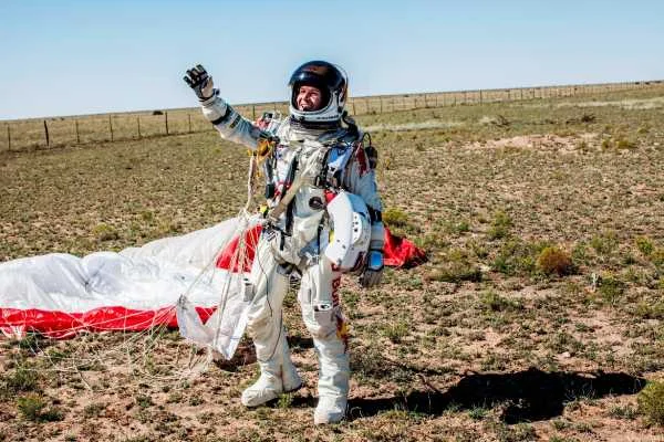 Феликс стартира процедурата, следвайки указанията на полковник Джо Китинджър – при изравняване на налягането, люкът на капсулата се отвори и Феликс застана пред лицето на историята.