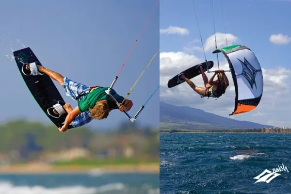 Усъвършенстването обаче не спира дотук и съвсем скоро Леганьо разработват и кайт с дъговиден дизайн. Следва обучението на първите професионални кайтбордисти, появата на първите училища, та до първото състезание, проведено през септември 1998 в Мауи и спечелено от Флаш Остин. Първоначално сърфистите използват еднопосочни дъски, подобни на тези в уиндсърфа, но с началото на новото хилядолетие все по-популярни стават двупосочните дъски.