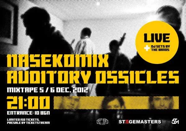 На 6 декември в зала B-Side на club *MIXTAPE 5* две от най-любопитните групи в родния инди електронно-акустичен авангард – Nasekomix и Auditory Ossicles ще направят първия си общ концерт заедно.