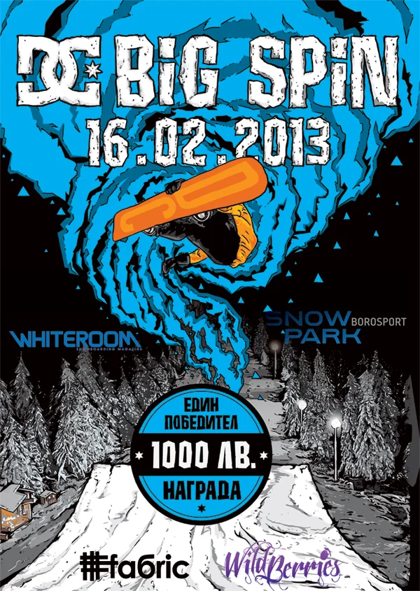 На 16 февруари (събота) в Snow Park Borosport ще се проведе DC BIG SPIN сноуборд състезание. Участниците в него ще се надпреварват с трикове с градуси, откъдето идва и самото име на състезанието DC BIG SPIN.