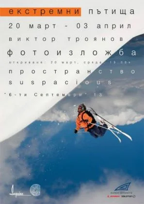 Изложбата на Виктор Троянов „Екстремни пътища е в пространство Suspacious, ул.“6-ти септември“13, София, от 20 март до 3 април. Откриването е на 20 март, 19 ч.