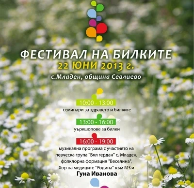 На най-дългия ден в годината, 22 юни, над язовира в китното село Младен, община Севлиево, ще се случи първото издание на „Фестивал на билките“. В рамките на един ден в тематични шатри билкопроизводители, биопроизводители и производители на лекарствени средства на билкова основа ще представят своите продукти и ще обменят опит с всички посетители. Между 10 и 13 часа в читалището на селото ще се проведат лекции на тема различните видове билки в България и тяхното влияние върху здравето на човека. След 13 часа ще започнат работилници, отново посветение на билките, как да се берат и съхраняват те, както и на тяхното използване в кулинарията, козметиката и други области. Входът е безплатен за всички събития.