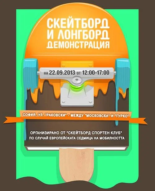 НовиниСъбития Скейтборд и лонгборд демонстрация от Venelina Velichkova - 20.09.2013 0 Дата на събитието: 22.09.2013 СподелиShares На 22 септември, неделя от 12 до 17 ч. в София ще има зрелищна скейтборд и лонгборд демонстрация. Мястото е улица “Раковски“ от ул. “Московска“ до “Ген.Гурко“. Организатор е СНЦ”Спортен Клуб Скейт Загора”. СподелиShares