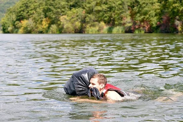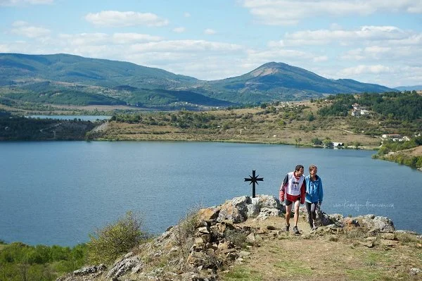 Е, не беше само той, и аз спуках гума, но с припомпване стигнахме до втората контрола, където оставихме гумите да спадат, а ние се накиснахме в „бистрата“ вода на язовир Пчелин. 1,4 км плуване с кратко притичване до едно параклисче на едни скалички от другата страна на язовира.