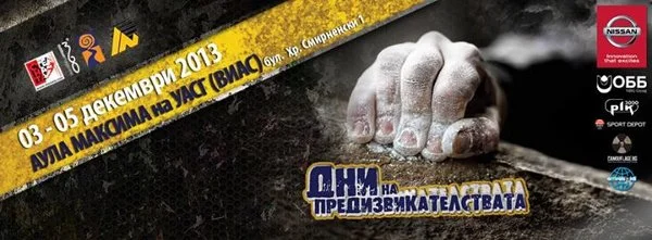 “Дни на Предизвикателствата” е фестивалът на екстремните спортове, приключенията, екологията и природосъобразния начин. Тази година той ще се проведе на 3, 4 и 5-ти декември, всяка вечер от 18:30 ч. в УАСГ, София.