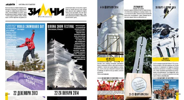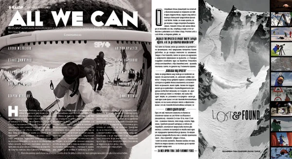 Срещнахме се на живо и с главните виновници за същестуването и развитието на българската екстремна филм-сцена, която става все по-добра, напук на всички трудности. Стигнахме чак до Аляска, за да проследим в какво се превръщат осъществените мечти с разказите на двама наши приятели за пътешествията им в земята на дивата природа и девствените склонове. Събрахме достатъчно интересна информация, за да възбудим любопитството ви къде и какво още има за правене през зимата, било то ледено катерене, фрийстайл паркове, пързаляне с лопати, снежни фестивали или просто киснене в минерални басейни.