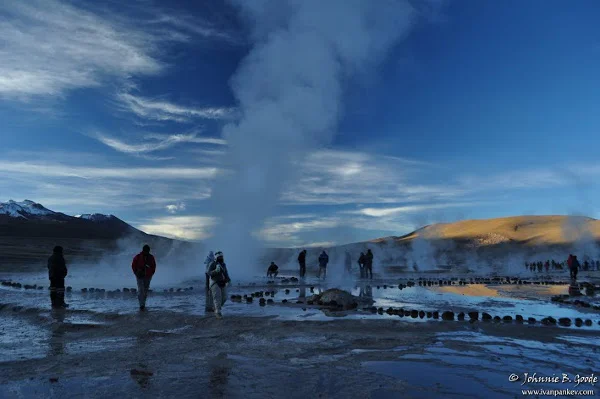 От градчето Сан Педро де Атакама (2400 м.н.в.) отидохме на организирана екскурзия до полето с гейзери Ел Татьо – третото най-голямо в света. За целта ни натовариха на автобус в 4 през нощта и по един черен път по изгрев слънце бяхме при гейзерите на 4300 м.н.в. – бързо добиваш представа как вероятно се чувстват астматиците.