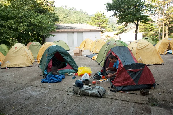 Казаха ни, че къмпингуването не е забранено, но се оказа и че не е лесно предвид релефа на планината. Единственото възможно (равно) място се оказа в задния двор на един 4-звезден хотел на върха на планината.