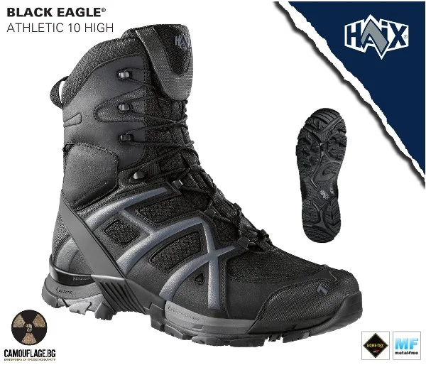 HAIX Black Eagle Athletic 10 High са немски спортни обувки. Те имат Gore-Tex водоустойчива и дишаща мембрана. Това е ново поколение обувки от висок клас – леки, динамични, изключително устойчиви на приплъзване, водоустойчиви и дишащи.