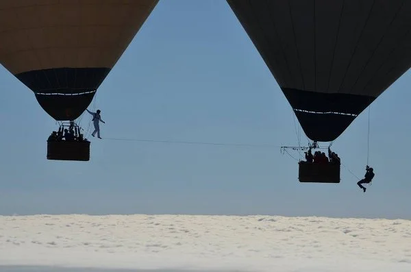 Две хайлайн ленти, опънати във въздуха межди 3 балона. Хора, готови за бейсджъмп, разхождащи се по клатещите си ленти. Хора падащи от хайлайн лентите! Откачени, кикотещи се френски клоуни с червени коси… Не, това не е сънят на някой екстремист прекалил с LSD, а част от най-новия филмов проект на Sebastien Montaz-Rosset, наречен Skyliners.