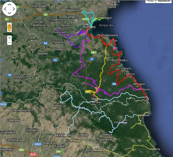– МАРШРУТ №5: Устието на река Велека – Устието на р. Резовска– гр. Малко Търново през ЗМ Силистар – с. Кости –параклис Св. Илия – светилище св. Марина – Влахов дол – с. Сливарово – Индипасха – Каменска Бърчина.