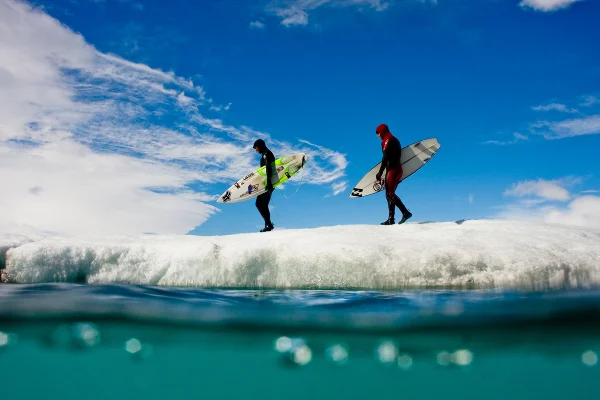 Всяко пътешествие по крайбрежието на Исландия носи опит, богат на широки, открити пространства и дълги вълни. Когато човек пътува из Европа и САЩ, той неминуемо среща ограничения под формата на огради, дворове, стени, знаци, навсякъде е пълно с граници. Исландия обаче е осезаемо отворена и чакаща да я опознаеш. Един от любимите плажове на сърфистите-авантюристи според Крис е плажът Йокусарлон, разположен близо до околовръстния път на Исландия, който обикаля цялата островна държава. Има много малко места по света като Йокусарлон, където човек може да намери лед на плажа и да влезе да кара сърф. С температури на водата, клонящи към 4 градуса през повечето време, Исландия е място само за тези, които имат смелостта да оценят красотата ѝ. Сърфистите там са облечени в дебели неопрени и плуват с дъските си между ледени късове. А най-добрите вълни излизат по време на внезапни снежни бури…