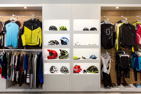 Сред качествените протекции са и каските Bluegrass и MET за ендуро и фрийрайд. В магазина се намира и най-голямата в България колекция на Oakley за лято и зима. Разбира се, има голям избор и на дрехи Scott и обувки за колоездене.