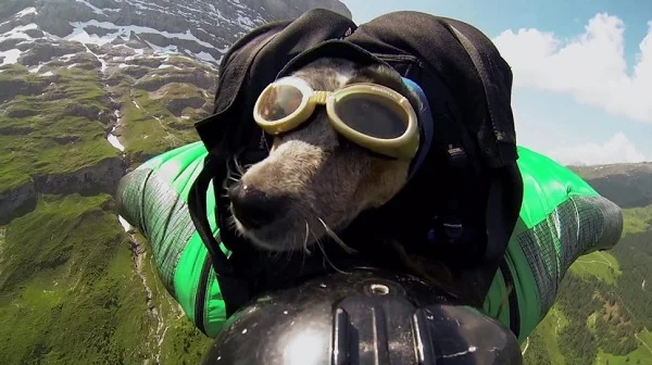 Кучетата не можели да летят. Напротив – едно от тях вече стана първото четириного, изпълнило екстремен уингсют полет.