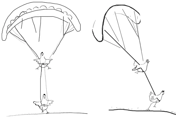 Ако искат да полетят като истински луди кокошки, екипажите ще трябва да измислят как да вдигнат пилота с крилото във въздуха и да прелетят най-голяма дистанция с осигурените от sky-camp.com крила.