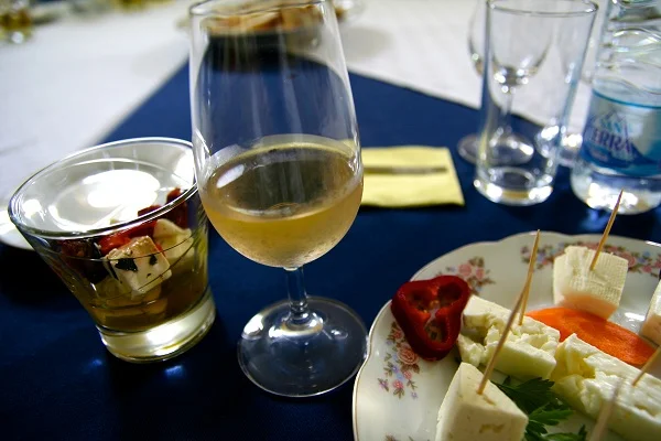 „Илиянчо, нямаме вино,“ прекъсна разказа си Адриана. Докато тя говори, ние дегустираме различните вина заедно със сирена, красиво подредени в плата, произведени от местна мандра, подпомогната от Българското дружество за защита на птиците. Опитваме виното с четирите си сетива, започвайки с очите. Те са първият орган, с който, според Адриана,ще преценим дали да продължаваме да се „занимаваме“ с това вино. Следващо е обонянието: