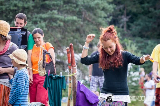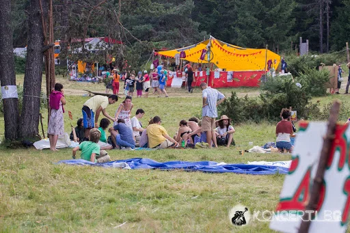 Първата фестивална сутрин. Сухи сме, с бодра крачка и дъх на кардамон. Полянката около язовира прилича на шарен мравуняк. Занаятчийниците от всякакъв вид образуват „главната“, по която излизаме на разходка за лакомства, прегръщаме познати, разменяме артикули. За подобен тип алтернативна валута ще се говори и по-късно във форум „Метаморфози“, малко по-нагоре. Компактни къщички се разпъват из местността. Новопристигналите се носят като народни песни. Такъв е и стилът на проект Белонога, която примесва музиката си с аборигенски мотиви. Диджеридуто присъства и във втората формация на Каба сцената – Тъпани и гайди. И с ток и без ток, хорото се случва и като че ли бедстващите ситуации и дъждът мотивират посетителите фестивала или поне тези, които знаят къде отиват.