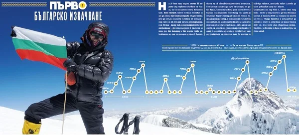 Повече за К2, българите, достигнали над 8000 м н.в. и какво мисли Боян Петров за планинарството, пионерството и осъществените мечти може да прочетете в брой ЕСЕН 2014 на Списанието.