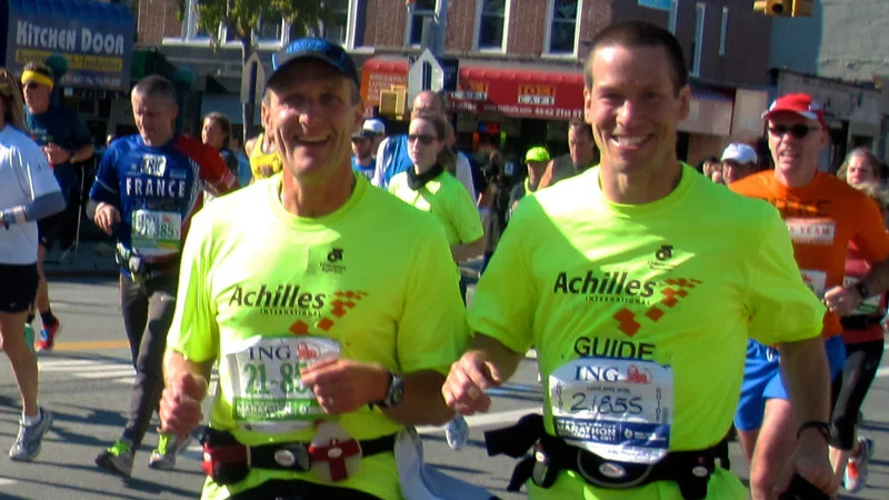 Дан започва с вело алеите, намиращи се близо до мястото, където живее. Постепенно се научава да се води от звука на стъпките си. В края на първия месец, откакто е започнал да бяга, той се записва на маратон. Избират за негов партньор човек, който да му помага да маневрира по-лесно. Скоро Берлин започва редовно да участва в различни състезания.