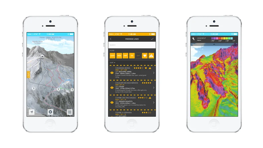 Fatmap е за iPhone(iOS) и Android. Приложението дава 3D карти на различните планини. Хората ще могат да виждат всеки малък детайл и контур от снежното било, по което се спускат. Освен това, ще определя и местоположението им.
