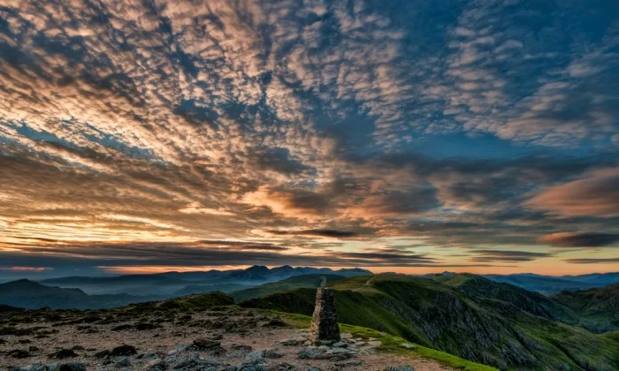 Силует на самотен планински катерач в Националния парк Lake District.