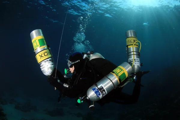 Първо и преди всичко – опит, задълбочени познания за физиологията и физиката на гмуркането, дълга подготовка и планиране. Едно техническо гмуркане може да бъде планирано по различни начини. За разлика от любителя, техническият водолаз използва собствената си преценка до известна степен при планирането. За гмуркания на такава дълбочина работим в близко сътрудничество с Comex****. Ето какво е използвано при 200-метрово гмукане на Паскал Бернабе, организирано от Fantaseatec през април 2009-та. Екипът има 12 осигуряващи водолаза и лекар на място. Най-близката хипербарна клиника е в готовност за спешни случаи. 72 деко бутилки, 15 туинсета и 10 бутилки с кислород. 24 000 литра кислород и 50 000 литра хелий са използвани за газовите смеси. Общо 220 000 литра газове са приготвени. Гмуркането е с продължителност от 5 часа. 4 ч. и 49 мин. са прекарани в декомпресия от Паскал Бернабе. 11 ч. и 30 мин. е общото деко време на осигуряващите водолази. Използваната екипировка, включително бутилките, е над 2 тона. Цената на гмуркането е около 10 000 евро. Един водолаз би могъл да седи 48 часа на дълбочина 30 метра с използваните газове при SAC 20 литра в минута (средностатистическа консумация на въздух).
