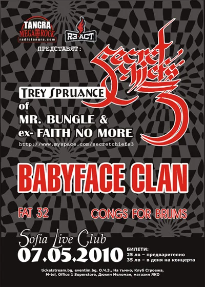07 май – ‘Sofia Live Club’- Secret Chiefs 3, Babyface Clan, Fat 32 и Congs For Brums