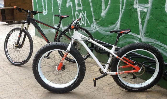За целта избрах два велосипеда на DRAG, които са със сходни цени в магазина. Единият, разбира се, беше „дебелото колело“ Fatbike DRAG Tundra, което е създадено точно за нужните условия – гази с широките си гуми в сняг и кал и казват, че е стабилно и на лед. Второто беше нещо по-стандартно – DRAG 29er Pro с шипове по гумите, които са широки колкото сме свикнали. За разбирачите ще поясня, че фетбайка е с гуми Schwalbe Jumbo Jim 26×4.8, а другото колело с Schwalbe Marathon Winter RG 28×2.00. Всъщност гумите от 28 и 29 инча имат еднакъв вътрешен диаметър, което дава възможност на една такава гума да се използва при градски и планински велосипеди.