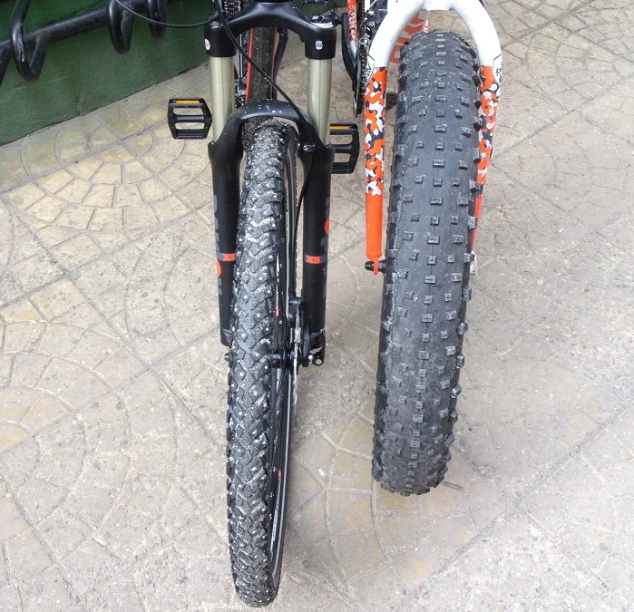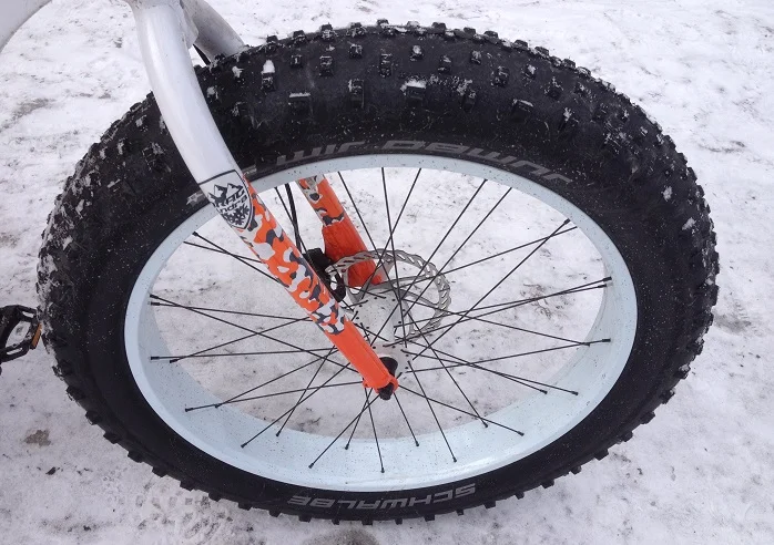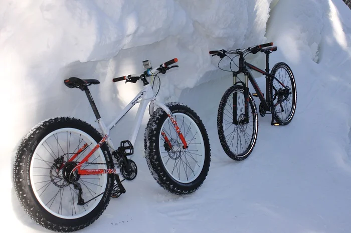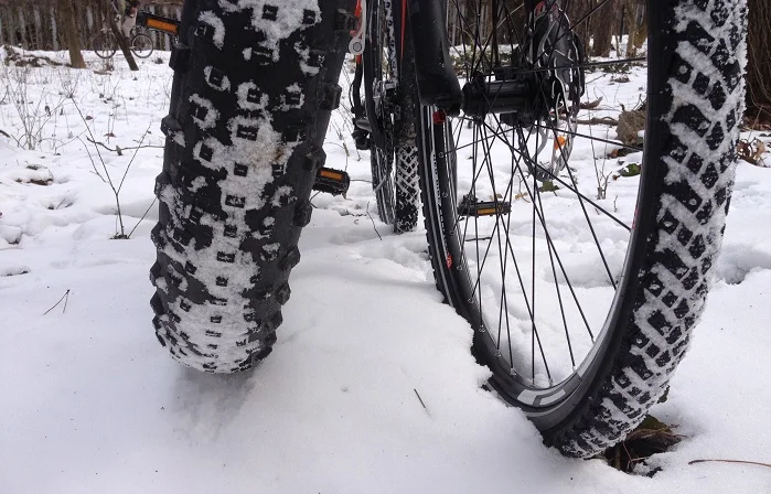 Предварително си бях определил различни условия, в които да тествам зимните гуми. Все пак, имахм два крайно различни велосипеда. Единият имаше чудовищни и меки гуми, а другият голям диаметър тънки гуми, снабдени с грайфери на ламели (вълнообразни пори в грайферите) и шипове – като зимни гуми на автомобил, но тънки.