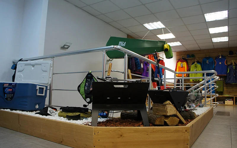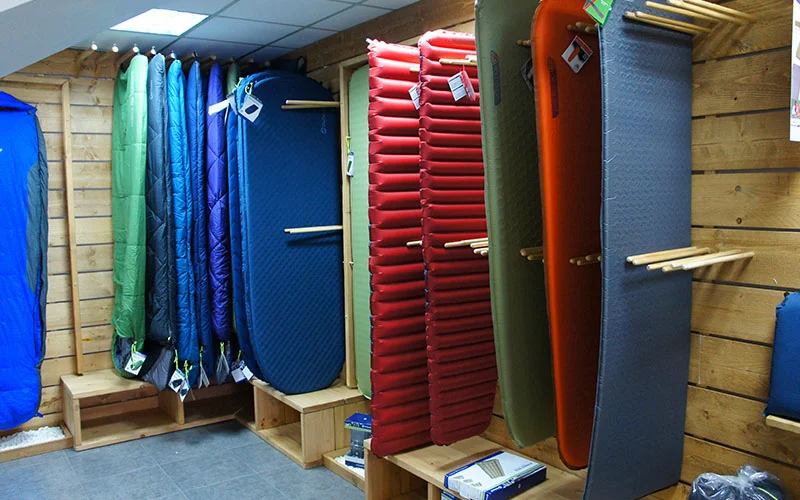 Къмпинг екипировката в новия шоурум се е разпростряла на два етажа и обща площ 150 кв. м. Там можете да намерите всичко, което ви е необходимо за къмпингуване, както и туристическа екипировка. Сред разнообразието ще откриете спални чували, постелки, легла, къмпинг мебели, посуда и всякакви къмпинг аксесоари на марките Outwell, Coleman, Robens, Trimm, Sea To Summit, Bergans of Norway и много други.