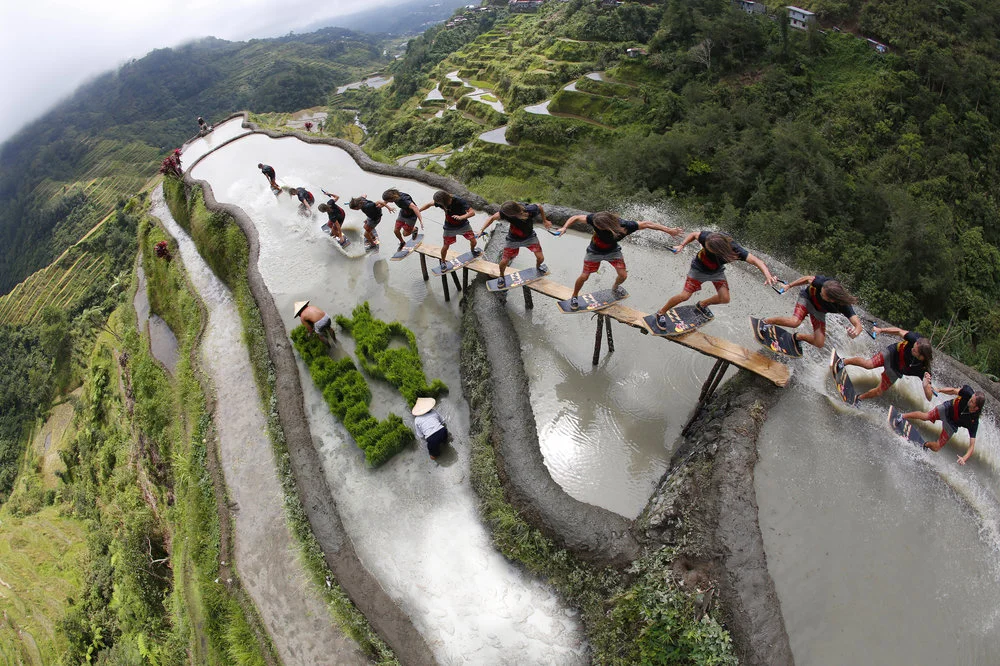 През последното десетилетие уейкскейтърите разширяват границите на спорта си, като карат в басейни, фонтани, по мостове и къде ли още не. Толкова уникална локация обаче никой не беше опитвал. 2000-годишните оризови тераси в Банауе са оформени по склона на планина.
