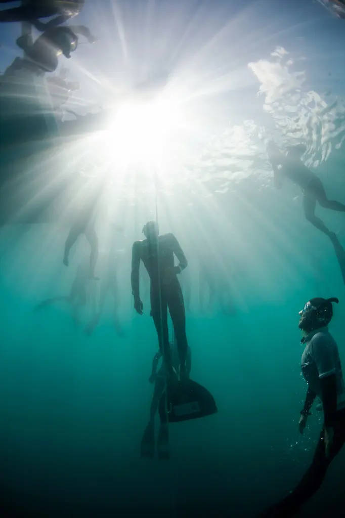 Това е рутинно преживяване за свободните гмуркачи, които отвеждат съзнанието и тялото си до крайности. Напрегнато и самотно занимание е, но фотографът Логан Мок-Бънтинг майсторски представя най-добрите свободни гмуркачи в света в снимки, улавящи уменията, приключенството и да – лудостта на този спорт.