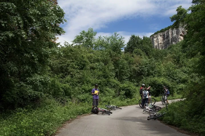 Една неудържима вълна от хора се заизсипвахме надолу по планинската пътечка. Дани отговаряше на въпросите ни в движение, насред разпорежданията, които даваше на екипа си за последни донагласяния на конструкциите, почиствания, размествания и т.н. Пътеката през гората изглеждаше лесна на някои. На мен също – за ходене. Тествахме гледните точки за снимки заедно с Денислав Ангелов от Търново, който на състезанието се класира първи сред юношите. Докато гледах струпванията на камъни насред пътеката и си мислех не пукат ли те гуми, Денислав прелиташе над тях. Ясно! Това е стратегията да не пукаш гуми. Ще го имам предвид.