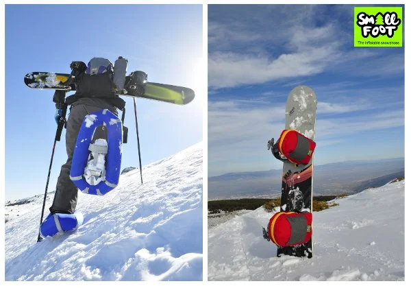 Small Foot са изключително компактни снегоходки. Те са измислени от Петър Димитров след затъване в дълбок сняг със сноуборд на гръб. Неговата цел е била да създаде надуваема снегоходка, която, когато не се използва, може да бъде прибрана в компактна чантичка и прикачена за раницата или дори за сноуборда. Повече за идеята можете да научите от създателя й ето тук.